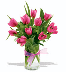Ten dazzling hot pink Tulips arranged in a