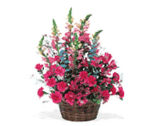 Alstroemeria, carnations and snapdragons arrive in a handled round basket. Approximately 17" W x 20" H