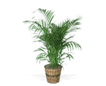 palm plant arrives in a rattan pot cover.