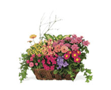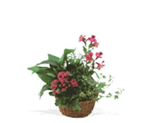 kalanchoe, along with fresh alstroemeria, arrive in a wicker basket