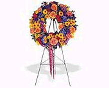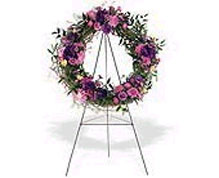 One wreath arrives on a easel filled with