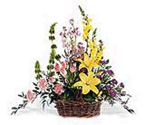 One arrangement arrives in a willow basket